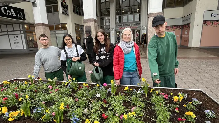 Pünktlich zum Frühlingsbeginn zeigt sich das Saarpfalz-Center in Homburg von seiner farbenfrohen Seite: Unter der Leitung von Ausbilderin Margret Metzger haben vier Auszubildende aus dem Bereich Gartenbau die Innen- und Außenbeete neu bepflanzt und für eine beeindruckende Blütenvielfalt gesorgt.