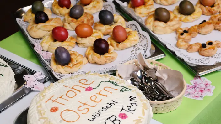 Und übrigens: Im CJD läuft vieles, was von außen gar nicht wahrgenommen wird. So wie die diesjährige Osteraktion unserer BvB-ler in der Küche. Gemeinsam mit ihrer Ausbilderin Andrea Bollenbacher gestalteten sie zwei beeindruckende Ostertische mit vielen Leckereien.