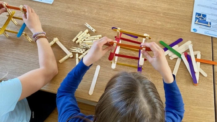Die Kinder erprobten dazu Aufgaben aus verschiedenen Bereichen: Sie trainierten z.B. Feingefühl und Problemlösefähigkeiten bei der Konstruktion von Türmen aus Eisstäbchen und Wäscheklammern oder forderten beim elektronischen Spiel „Simon Says“ ihr Gedächtnis und ihr Konzentrationsvermögen heraus. Besonders beliebt war auf jeden Fall auch das Zusammenbauen eines Würfels unter Zeitdruck – eine Aufgabe, die räumliches Denken, Ausdauer und Strategie erfordert. Auf diese Weise wurden wichtige Kompetenzen für den Bereich MINT auf spielerische und motivierende Weise gefördert. Das Feedback der Kinder wird in die Auswahl der Aufgaben für die Mitmach-Koffer einfließen.